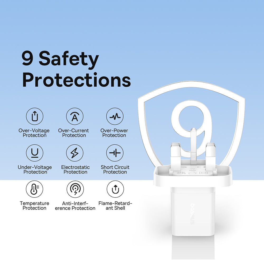 Baseus GaN5 UK Network Charger, 30W, 3A, 1 x USB-C, White P10110906213-00