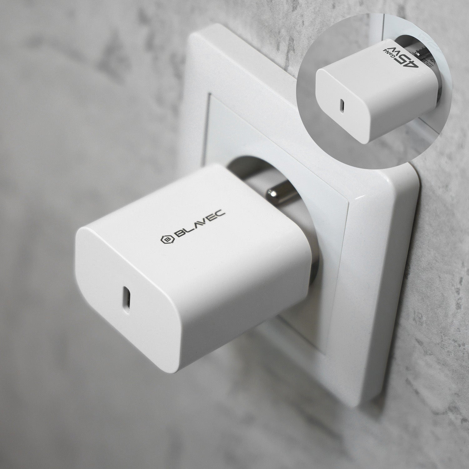 The Blavec BC-7 network charger is equipped with a 45W USB Type-C PD port, providing fast and stable charging for smartphones, tablets,