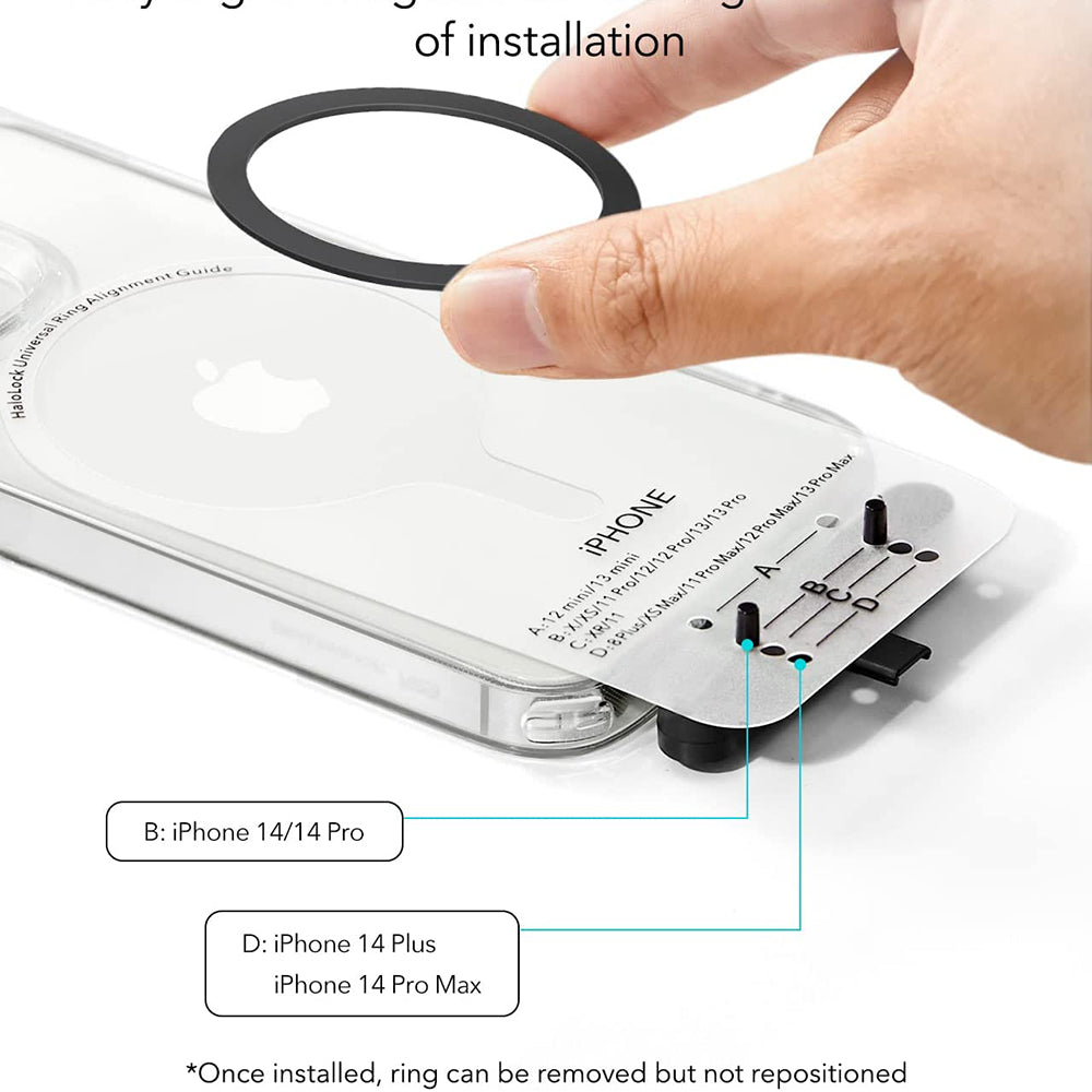 • The package contains two kits for mounting the ring, so you can position it properly. Everything is so simple with the new HaloLock adapter from ESR.