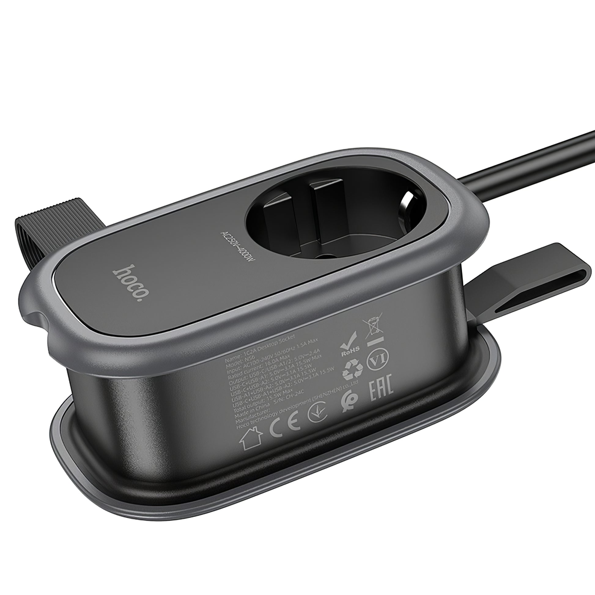 prelungitor-hoco-ns6-2C-4000w-2C-2.4a-2C-1-x-schuko---1-x-usb-c---2-x-usb-a-2C-negru