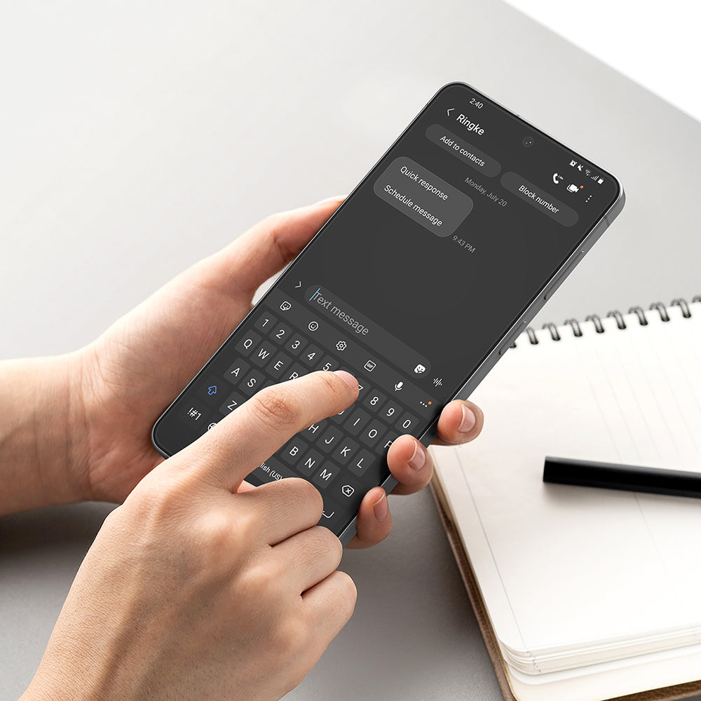 • We recommend this Ringke glass film. It has an oleophobic layer that makes it resistant to dust, fingerprints, and dirt marks.