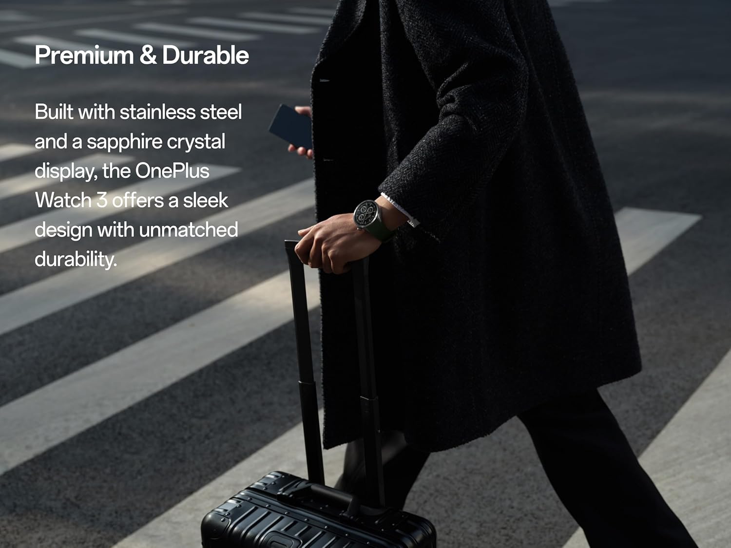 The OnePlus Watch 3 is a stylish smartwatch with a premium stainless steel case and a durable titanium alloy bezel.