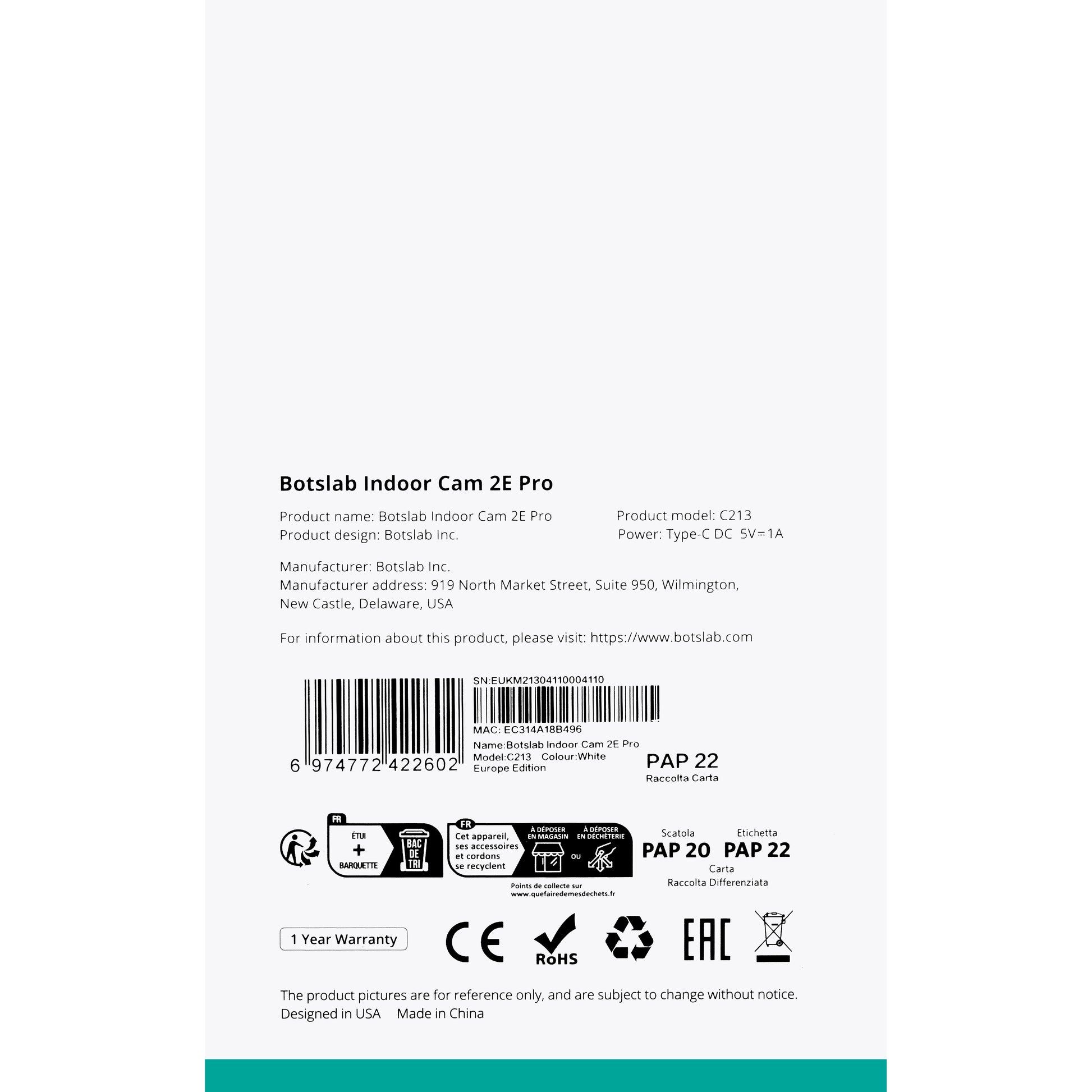 Cloud storage: Includes a one-year trial period for Botslab Cloud, with storage for motion-detected clips for 7 days.