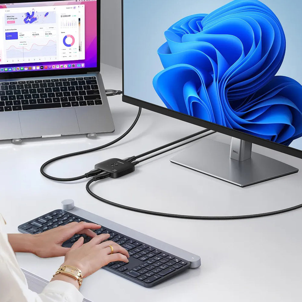 • This Ugreen splitter allows you to connect 2 devices to a single monitor. It is ideal for professional presentations at a resolution of 8K@60Hz.