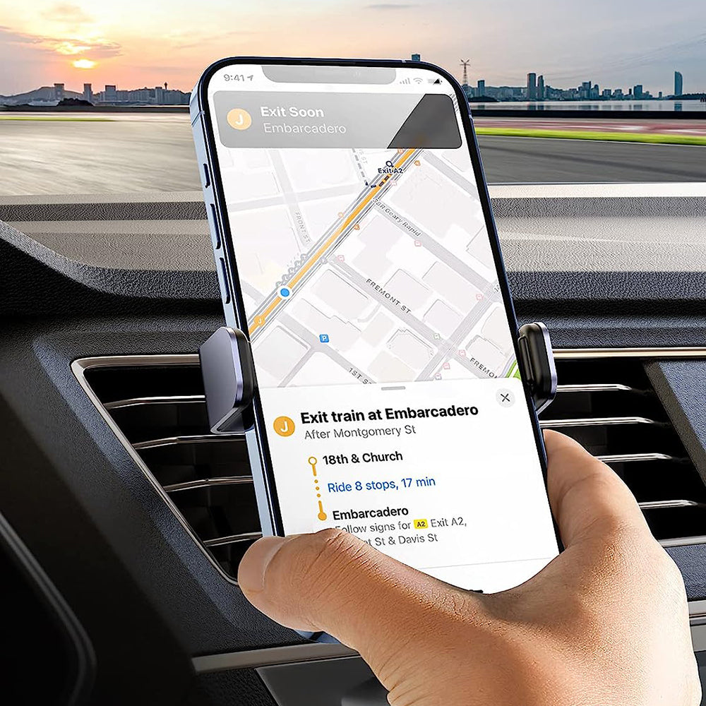 It easily mounts on the air vent and offers a comfortable user experience without blocking your view.