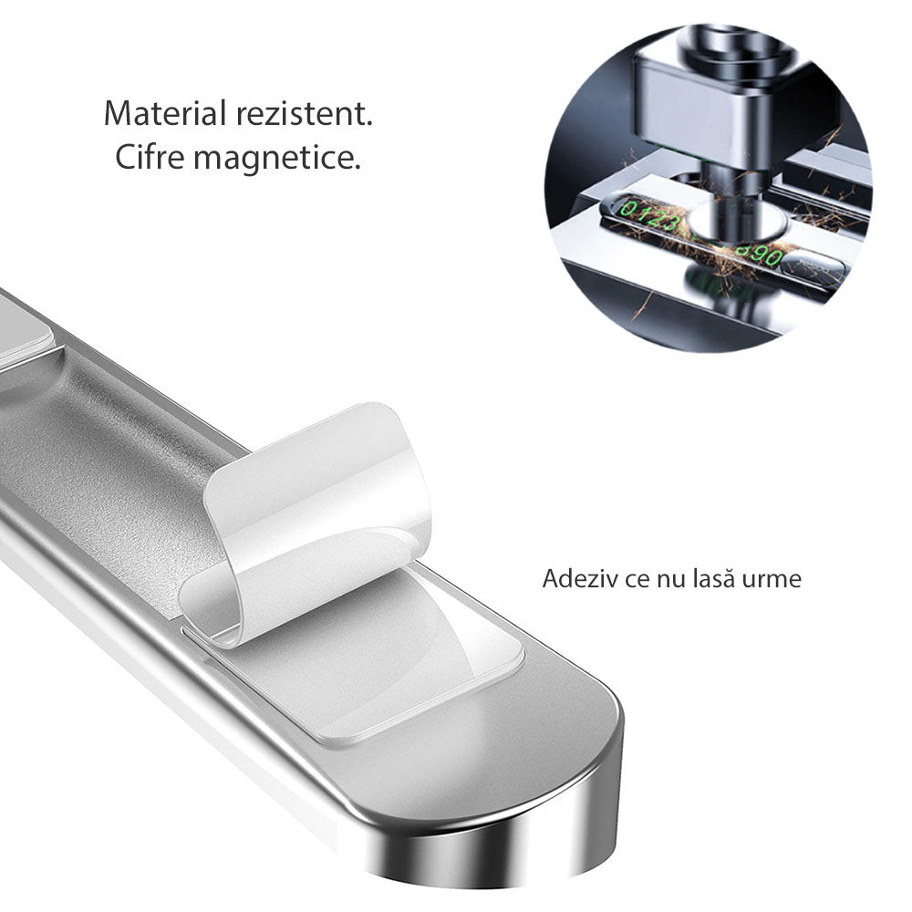 • Also, the numbers are magnetic, attaching them to the holder is a formality. The space allows for forming an 11-digit number.
