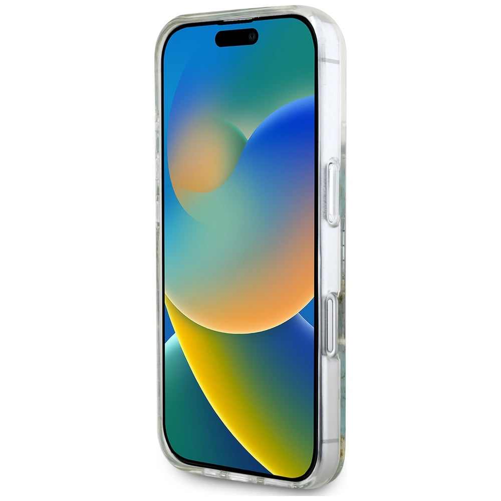 Θήκη MagSafe για Apple iPhone 16, Guess, Resin Flowers and Glitter, Τυρκουάζ