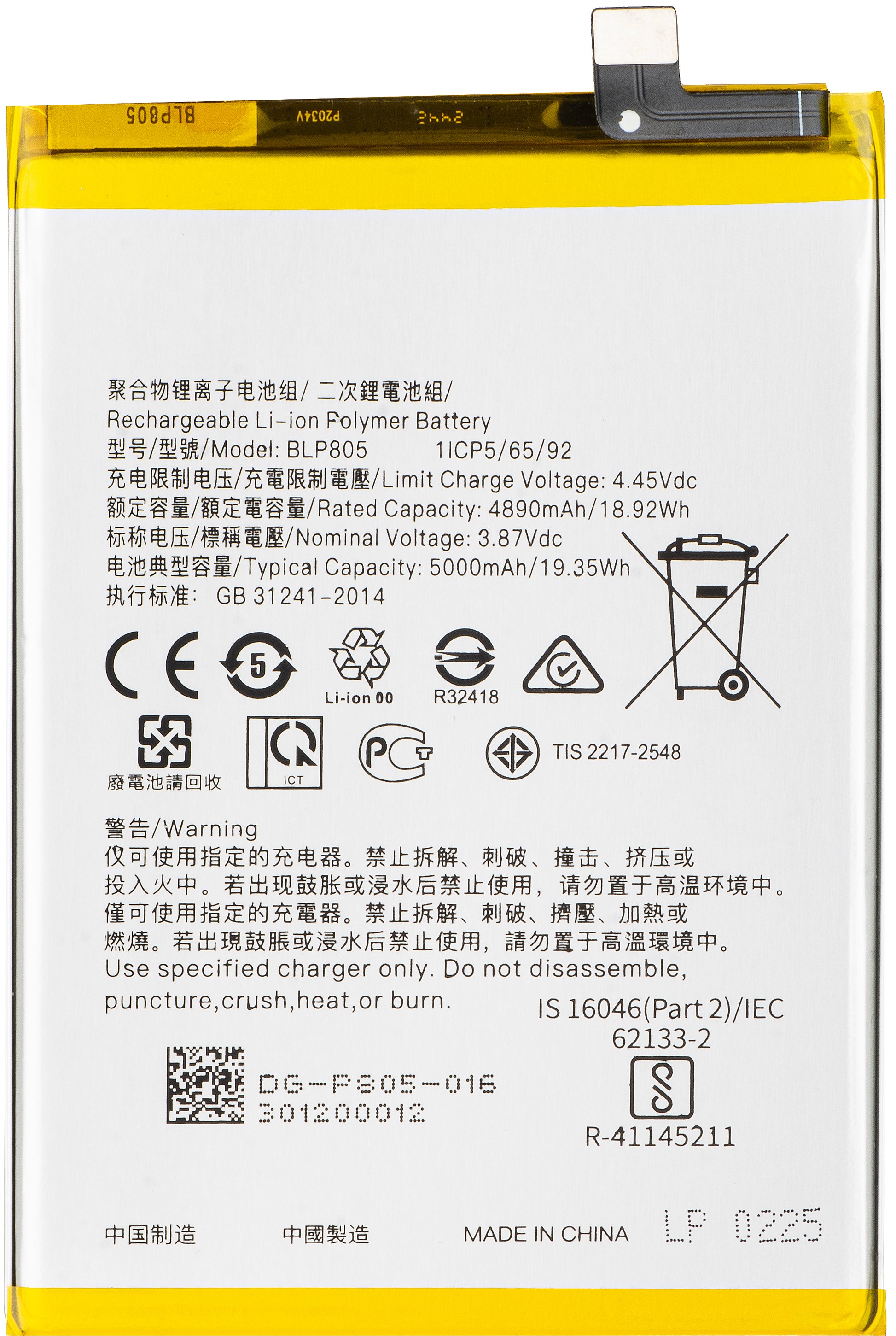 Μοντέλο μπαταρίας | BLP805 |