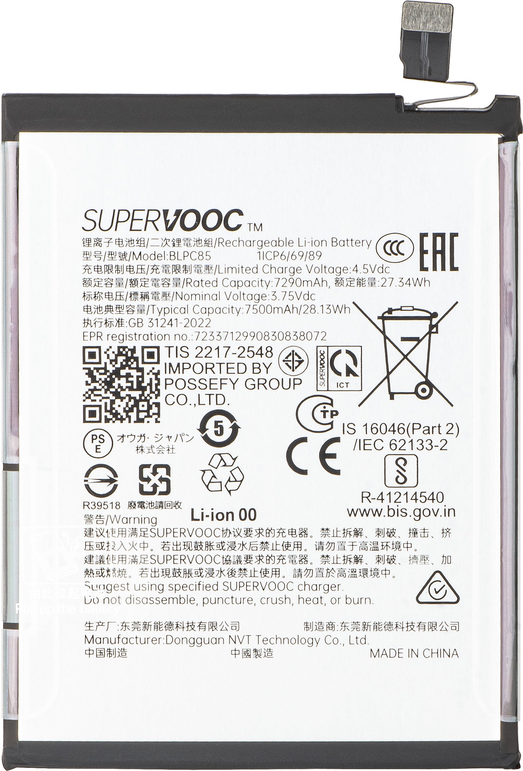 | Μοντέλο μπαταρίας | BLPC85 |