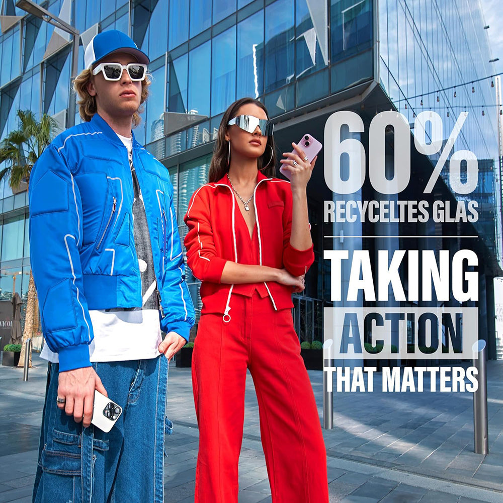 • Η μεμβράνη είναι κατασκευασμένη από ανακυκλωμένο γυαλί, επεξεργασμένο και καθαρισμένο για να διατηρεί τις οπτικές ιδιότητες στο επίπεδο του αγνού γυαλιού.