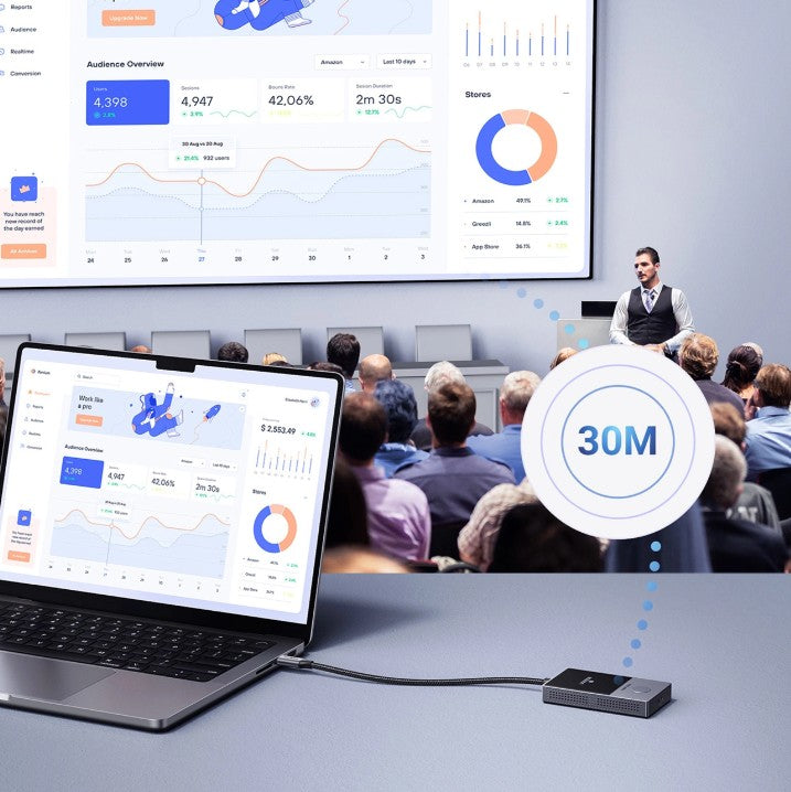 ενώ ο δέκτης συνδέεται απλά μέσω HDMI και USB-A στην οθόνη σας. Είτε θέλετε να προβάλετε μια ταινία στην τηλεόραση, να κάνετε επαγγελματικές παρουσιάσεις